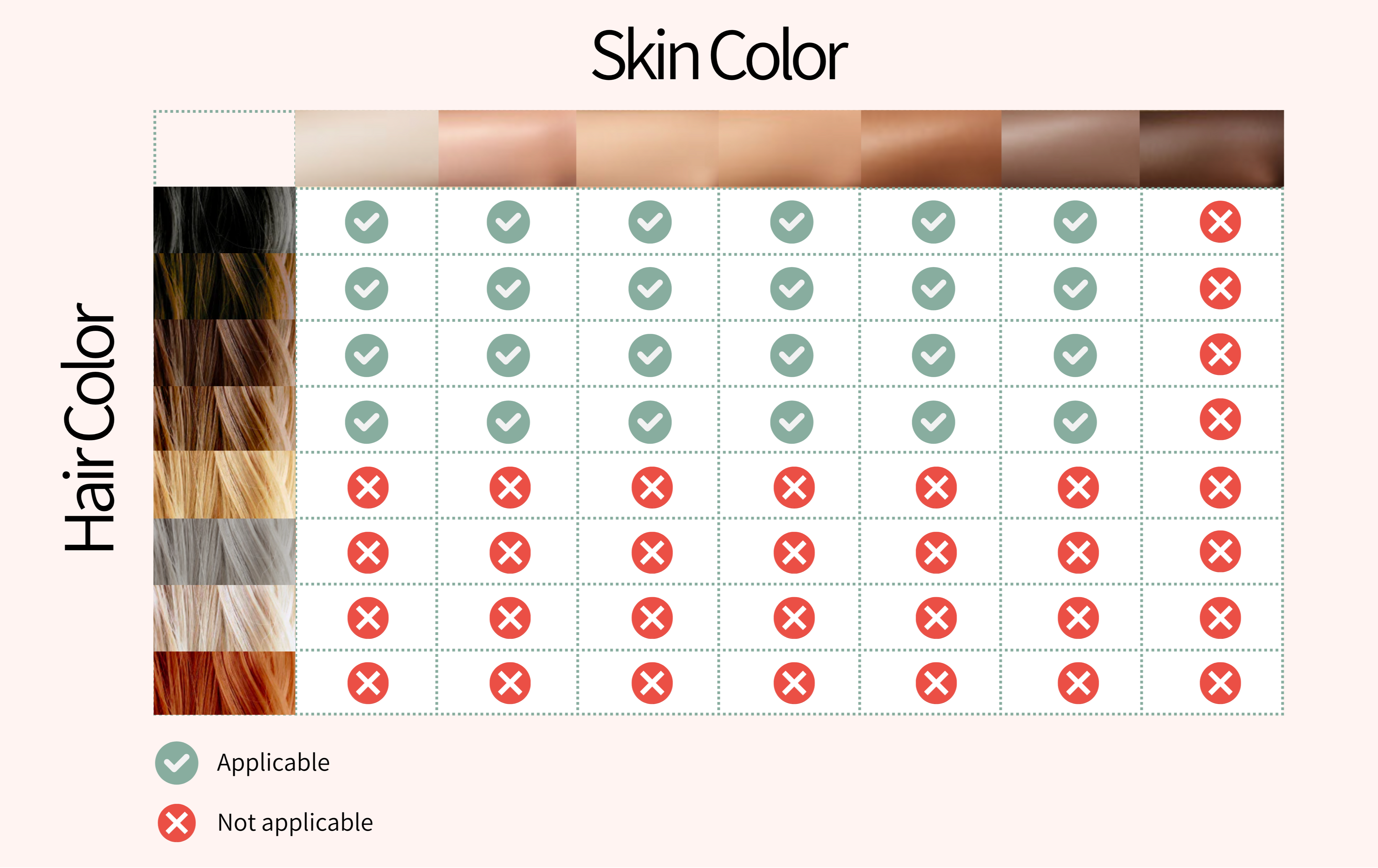 Please refer to the chart to determine if Magik is suitable for your skin tone and hair color.